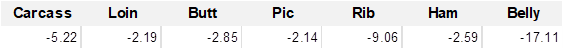- Cutout was supportive on Friday posting 95 cents higher. Gains in cuts struggling earlier in the week were able to push the overall value higher on Friday. Week to date cutout gave up $5.22
