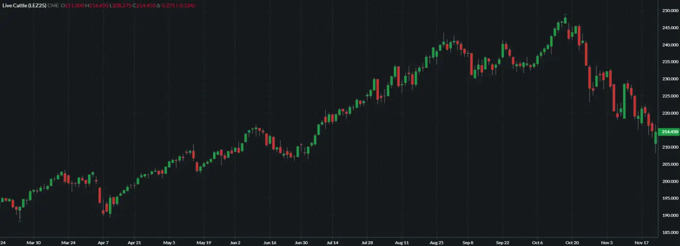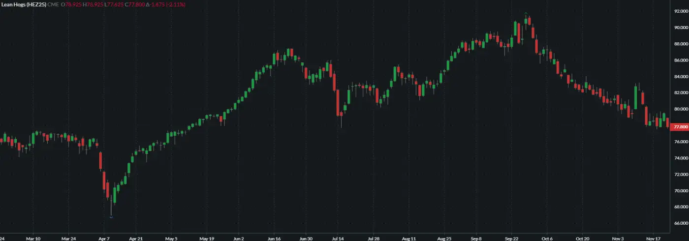 - Lean hog futures came under pressure again on Friday and finished the week with new low closes for the down move that started late September. Front month Dec closed at $77.80, which was the lowest close since May 9.