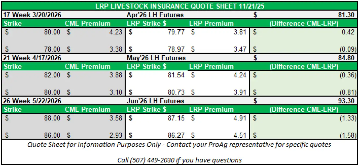 *NO LRP QUOTE DUE TO USDA CATTLE ON FEED RELEASE*