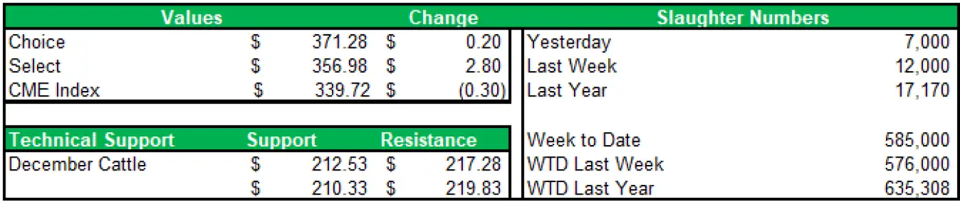 - The November Cattle on Feed report was released on Friday afternoon and appeared neutral to slightly supportive, but the Tyson announcement will likely be the larger market driver to start this week.