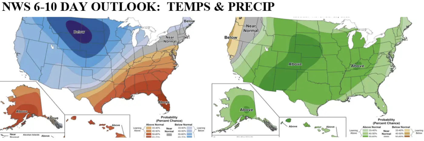 - Rains fell across the southern Plains and Midwest over the weekend and remain there this morning, with the heaviest action coming further south today and tomorrow. Rain and snow comes further north later this week into a wet 6-10 day time frame throughout, with 11-15 day maps more varied but still bringing plenty of precip chances. Temperatures will cool this week and sit safely below-normal right up through the first week of December.