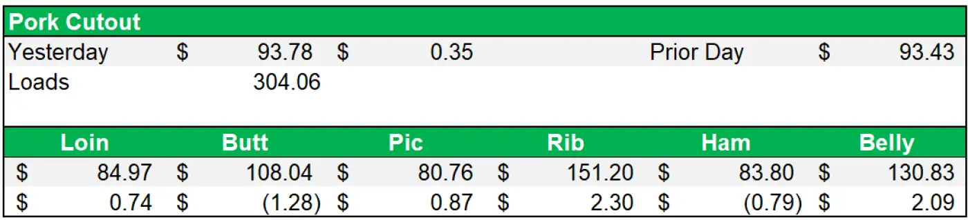 The pork carcass cutout found follow-through support from last Friday finishing at $93.78 up $0.35 as bellies continued to recover from a sharp pullback last Thursday.