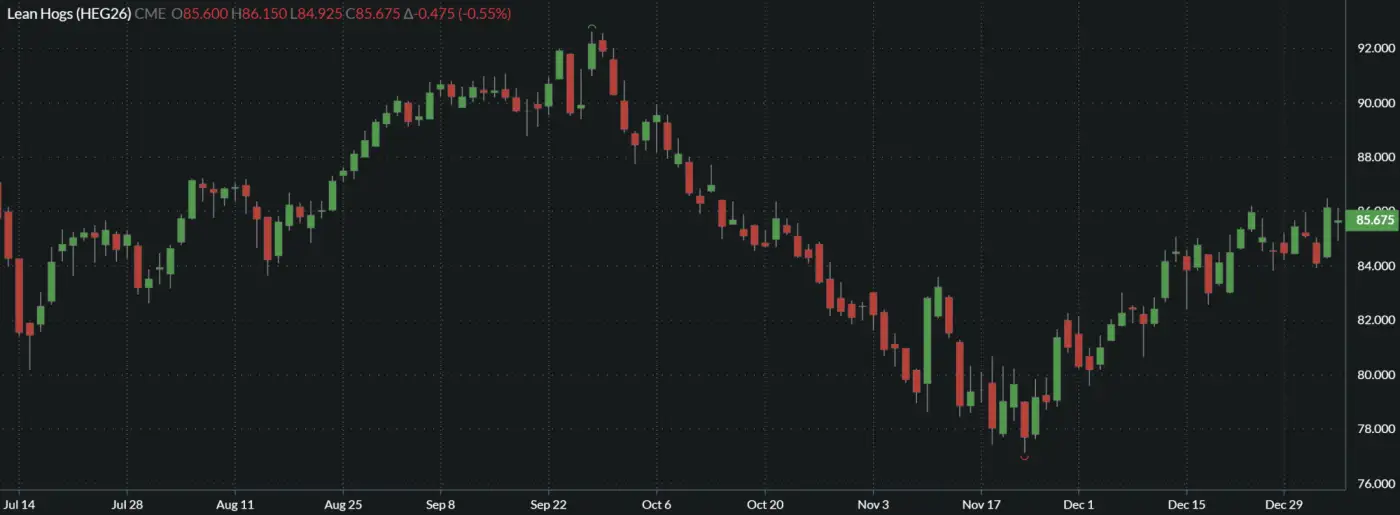 - Lean hog futures started Tuesday trading lower but firmed up and settled mixed. Front month Feb was down $0.475 at $85.675, and the Apr-Oct contracts were down $0.05 to up $0.375