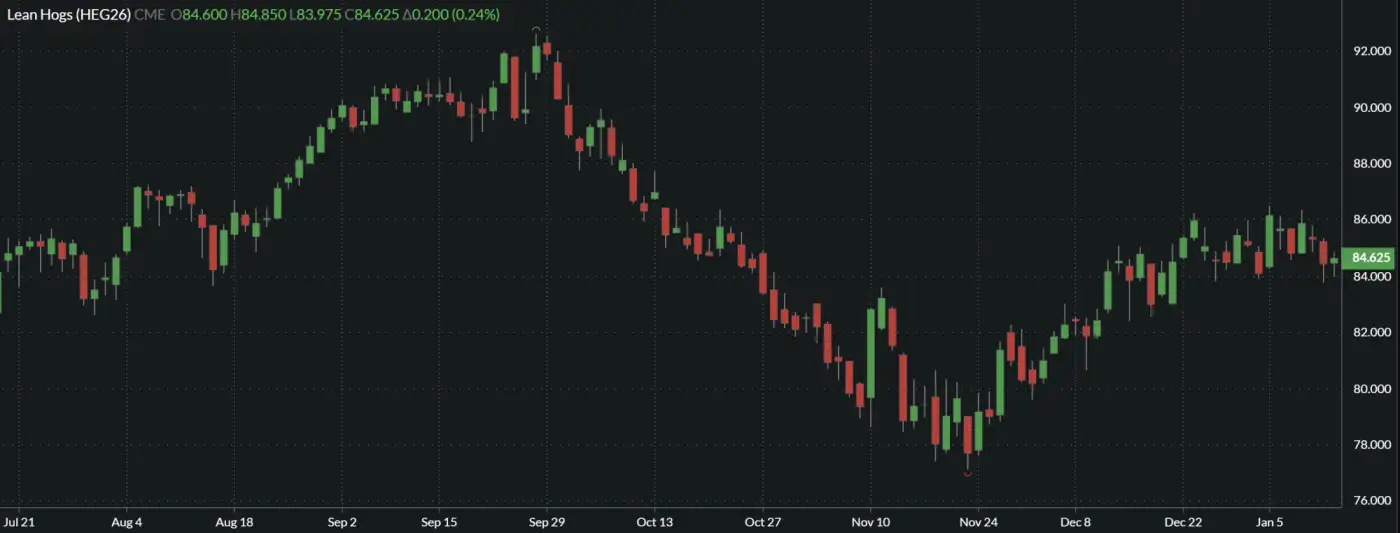 - Lean hog futures finished mixed on Tuesday with Feb up $0.20 at $84.625 and the Apr-Oct down $.475 to up $0.50.