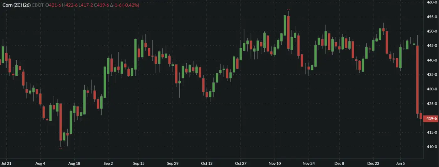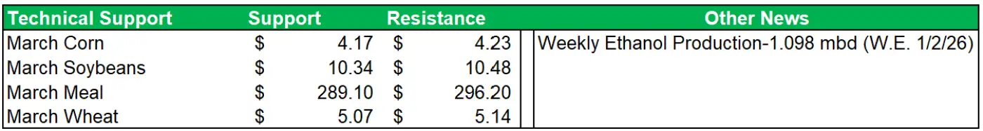 - Corn futures saw follow through weakness after Monday’s bearish USDA WASDE. March settled down $.0175 at $4.1975, and May-Sept were down $0.0275 to $0.055.