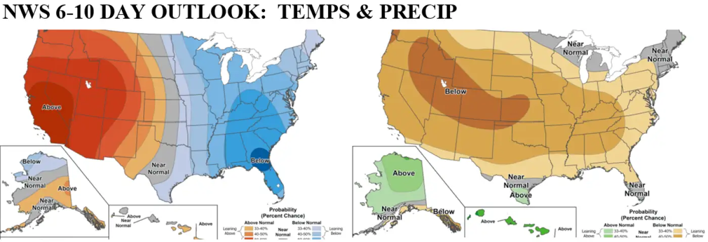 - Argentine rains will fall north through Friday while the center-south remains dry, and all areas stay dry into the 6-10; Brazilian precip looks widespread up into the weekend, but favors northern crop areas for the 6-10 day time frame.
