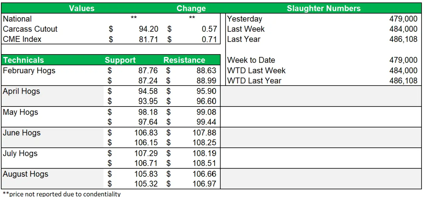 - Despite the weakness in the cattle market hogs seemed unfazed but did come off the early morning highs.