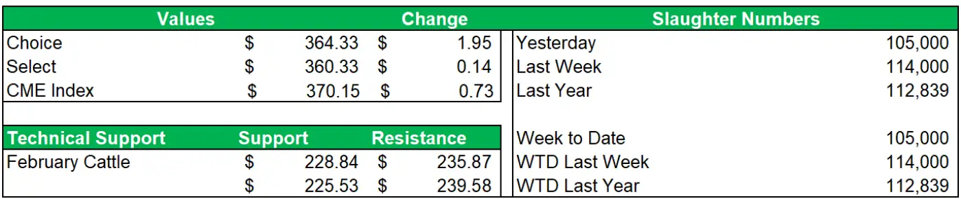 - Feeder cattle ended the week down $8.10 on the march after some rumors of screwworm potentially existing inside Texas.