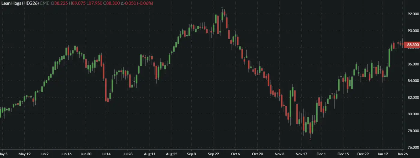 - Lean hog future finished mixed on Monday with Feb slightly lower at $88.30 down $0.05, and the Apr-Oct contracts up $0.125 to $0.675.