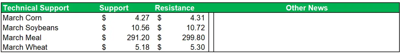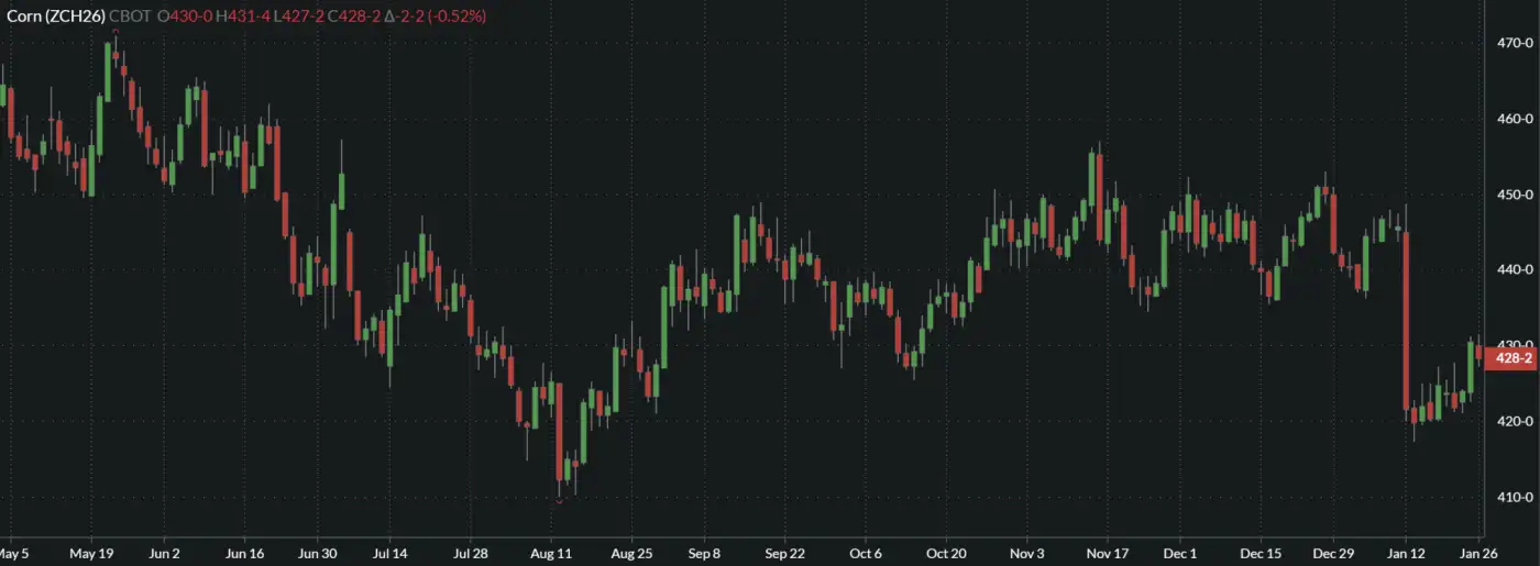 - Corn futures were modestly lower on Monday with front month March down $0.0225 at $4.2825, while the May-Sep contracts were down $0.0075 to $0.02.