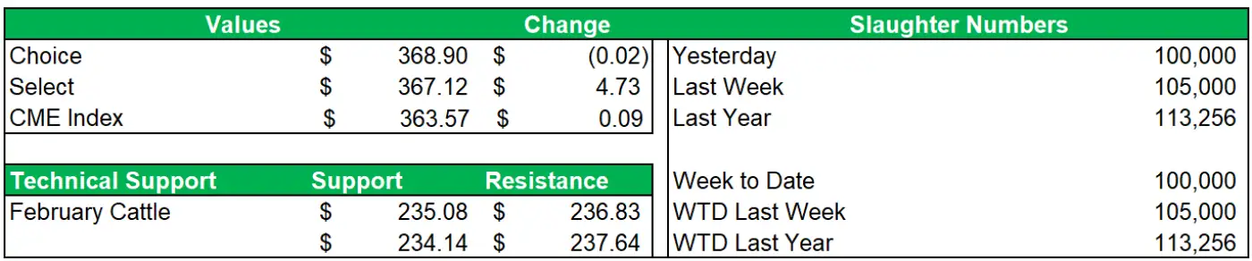 - Slaughter pace is becoming notably slower in recent weeks as packer margins pulled back in December and January remaining historically low. This week’s pace is starting out even slower at 100,000 hd.