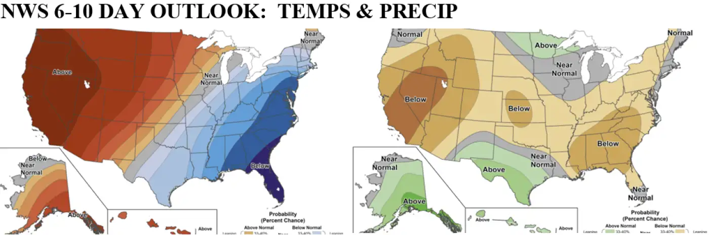 - The heart of the U.S. remains dry for the foreseeable future, with temperatures still cold but warming up a bit this week; extended maps move to a cool east/southeast and warmer west up through the first week to ten days of Feb.