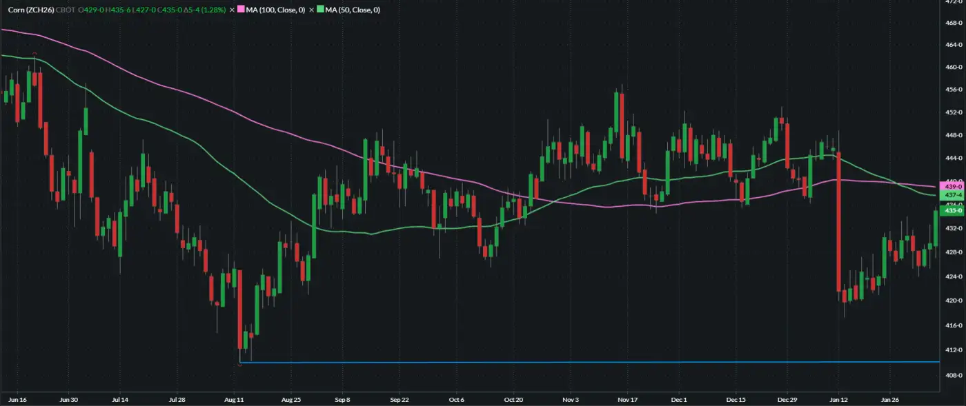- Corn followed along and new crop corn closed above $4.60, its first time since the day before the January WASDE report.