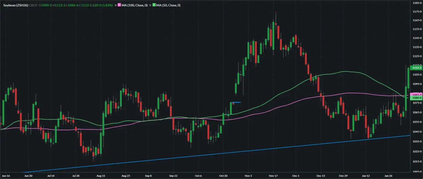 - Grains worked together as soybeans tried to take out the previous day’s highs after Trumps Truth social post saying China will “Consider” raising this marketing years purchases from 441 M bu to 735 M bu a 294 M bushel increase. With only 350 M bushels of carryout a 294M increase is significant.