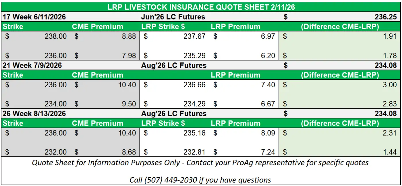 - Beef exports for the week ending 2/5 came in at 15.7K tons, bringing cumulative sales for 2026 to 181.3 tons, down 0.9% vs last year.