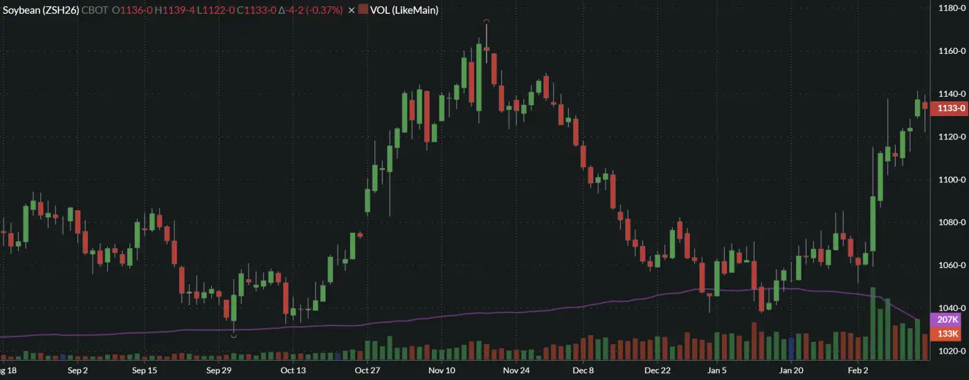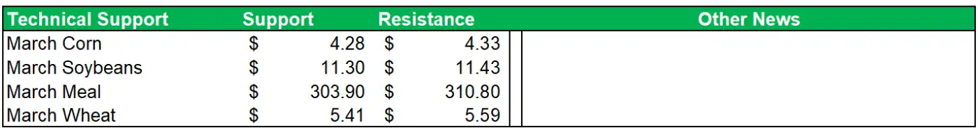 - Front month March was down $0.0425 at $11.33, and the May-Sept contracts were down $0.0275 to $0.0375.
