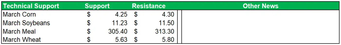 - Soybean futures finished modestly lower on Friday. March was down $0.035 at $11.375, and the May-Aug contracts were down $0.02 to $0.0275.