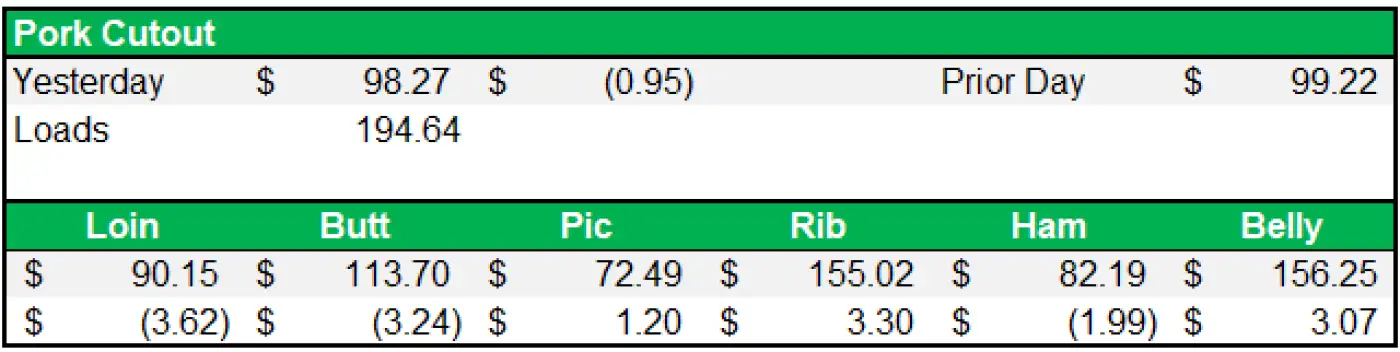The pork cutout was $98.27 on Friday afternoon, which was the lowest print of the week, but overall the cutout performed well over the course of the week making new calendar year highs.