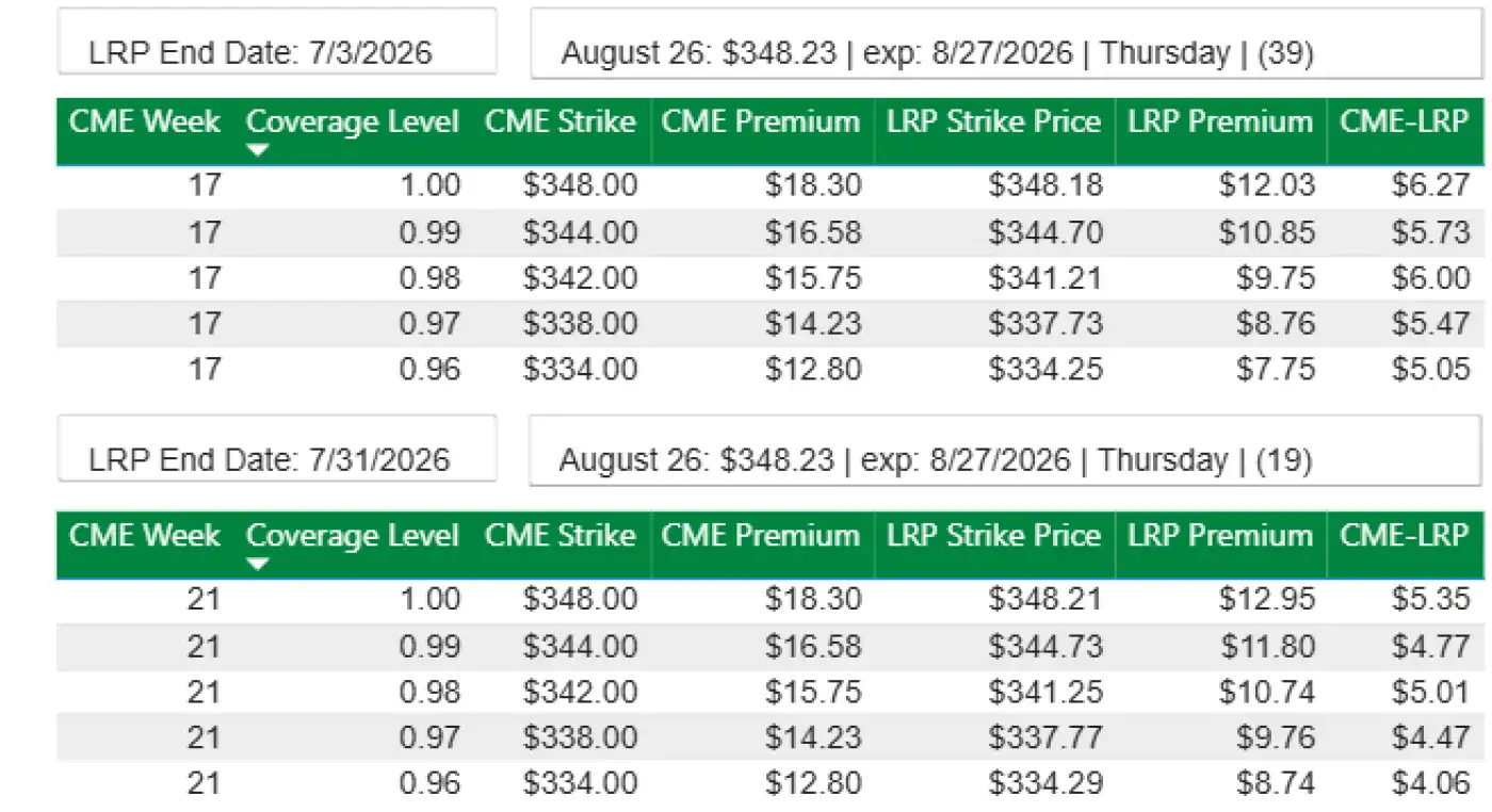 Negotiated trade was lower on the week with most trade taking place near $240. That was down $4 in the south and down $2 in the north vs the week prior.