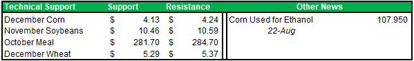 - Soybeans are trading lower on the over night, will be interesting to see if we can hold that $10.40 spot on the Nov contract.