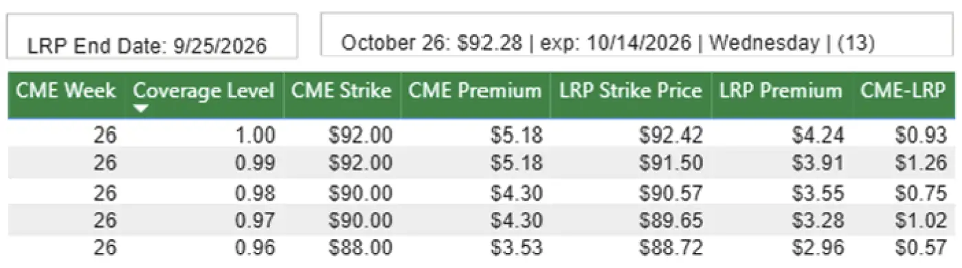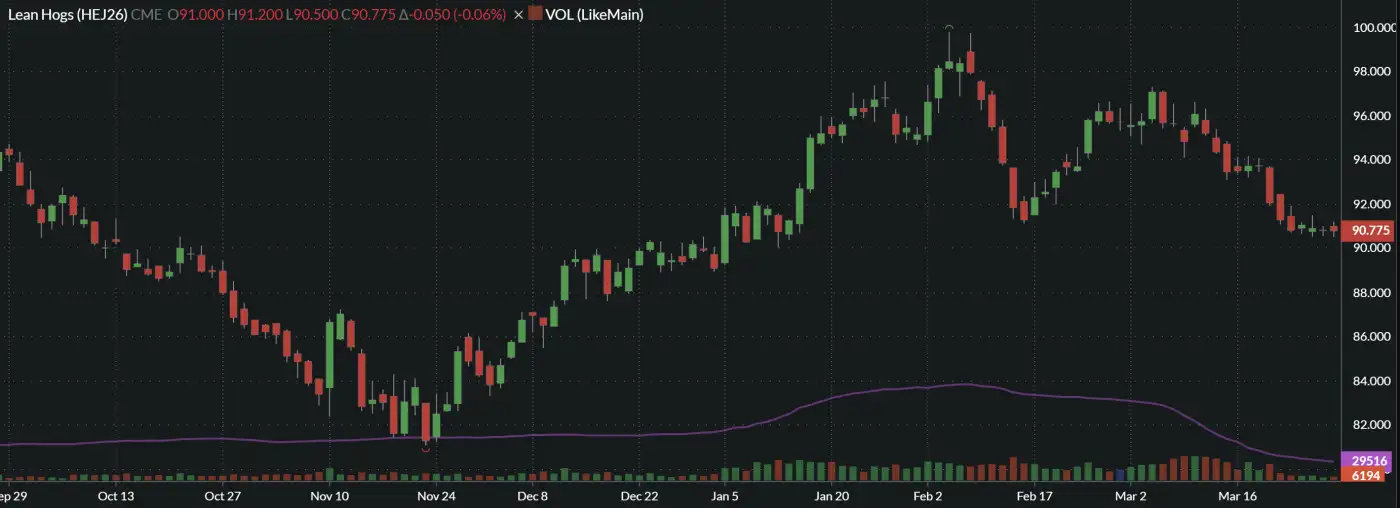 - With the exception of the nearby April contract, lean hog futures had a firm tone to end the week after having spent most of the week grinding sideways. The April contract settled at $90.775 on Friday, down $0.05 on the day and down $0.50 on the week. The Jun-Dec contracts gained $1.275 to $2.225 on the week with the stronger performing contracts being the more nearby months.