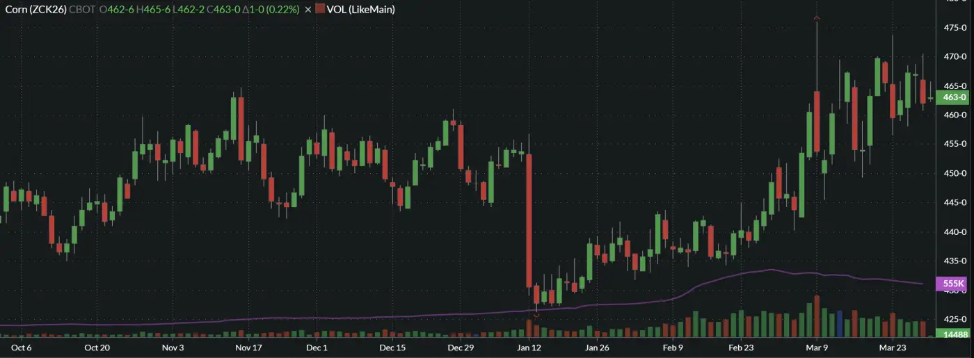 Corn futures ended the week lower being pressured by a sharply lower soybean market. Front month May corn was down $0.05 at $4.62, and the Jul-Dec contracts were down $0.04 to $0.045.