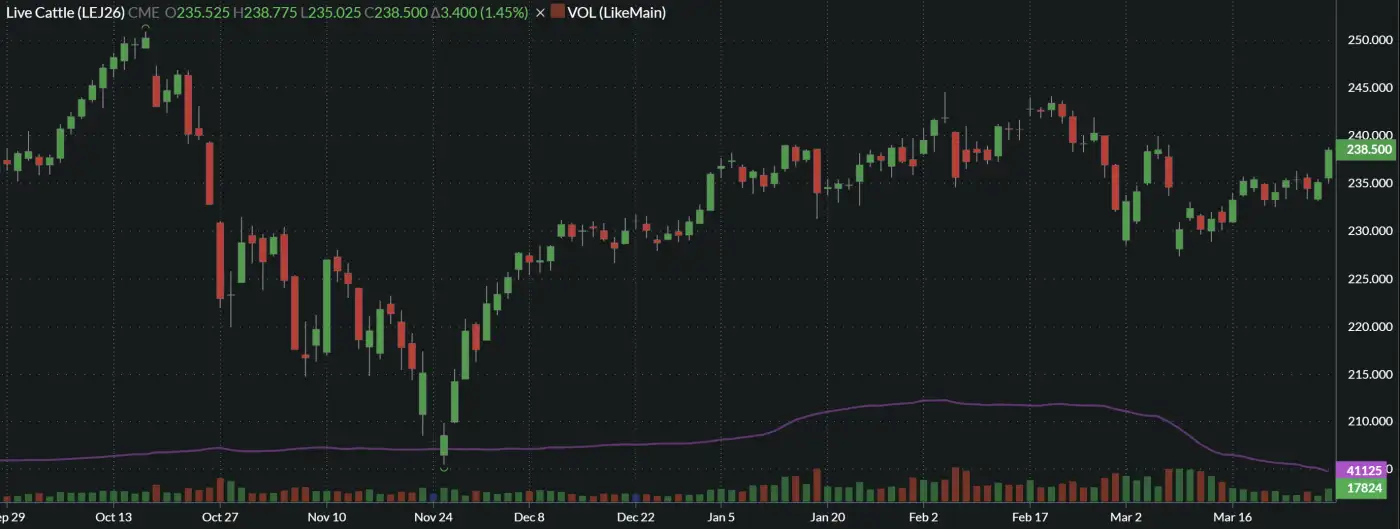 Cattle futures had another firm week and ended at the weekly highs Friday. Front month Apr settled at $238.50 on Friday, up a sharp $3.40 on the day, and up $4.45 for the week. The Jun-Dec contracts were up $3.95 to $5.35 on the week with the more nearby months performing better than the more deferred months.