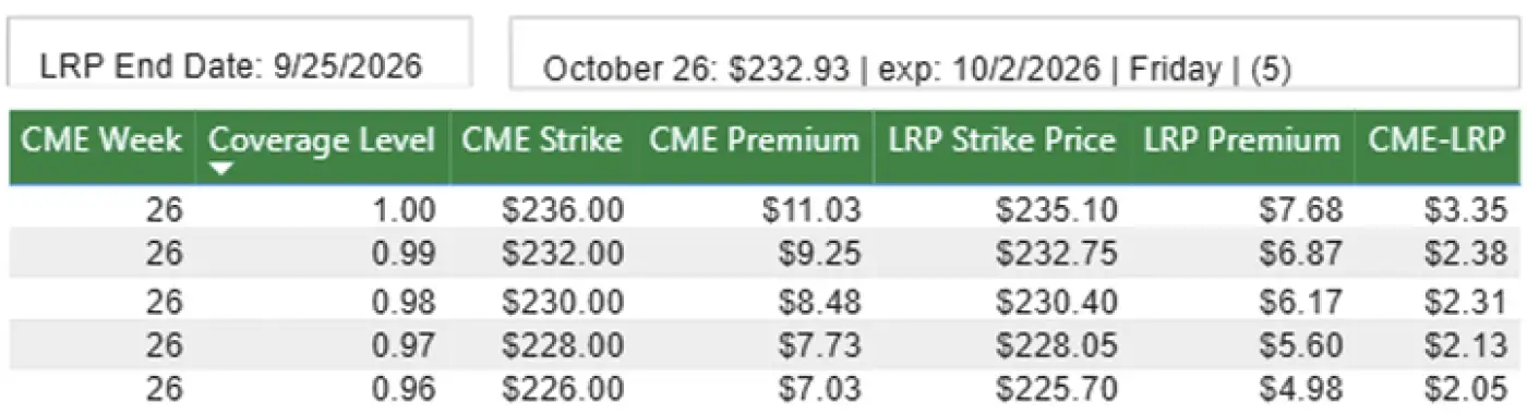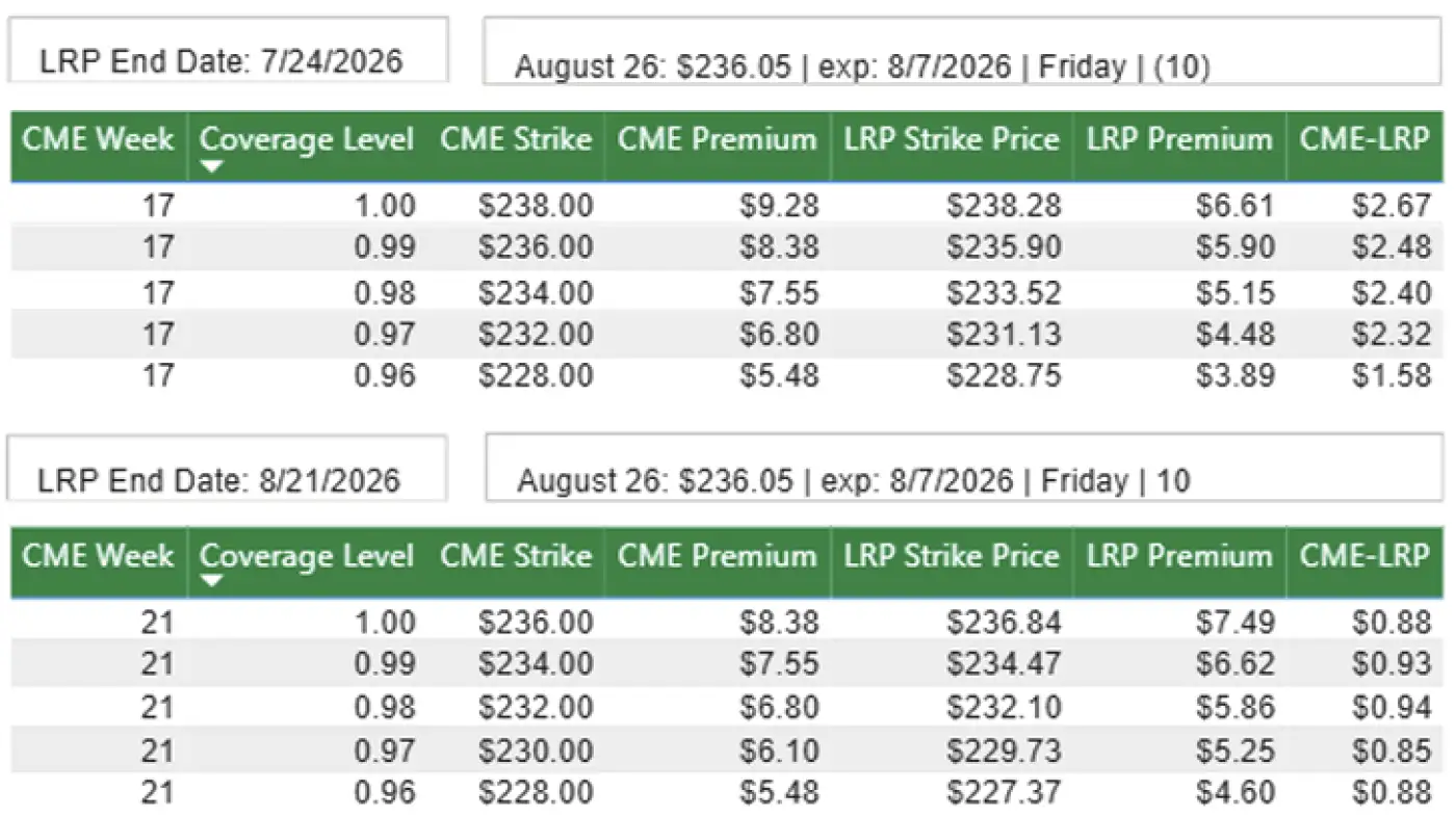 Negotiated trade for the week was mostly $235 in the north and $235-238 in the south. Steady to $3 higher than the previous week.